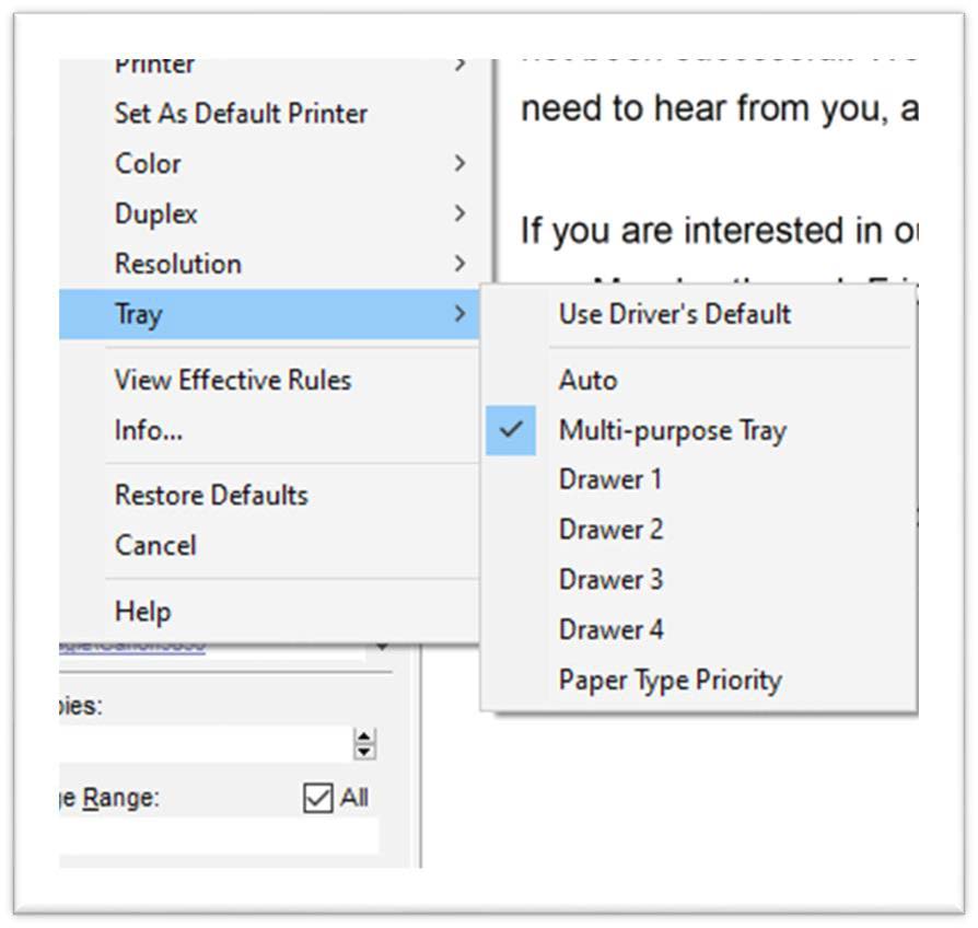- Left click on the //Eagle/Cannon 5850 to select the correct tray: Multi-purpose Tray