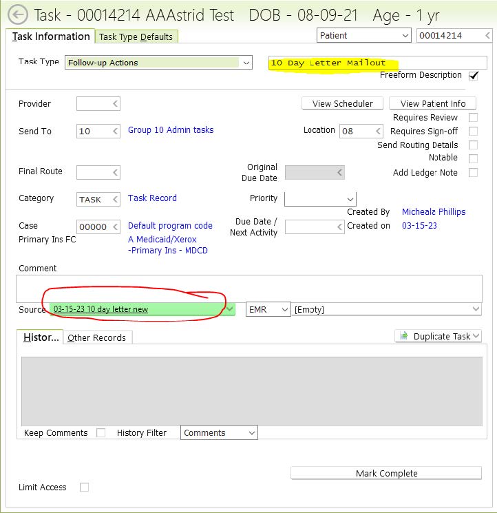 - Go to Group 10 tasks, open the automated task and print the 10-day letter