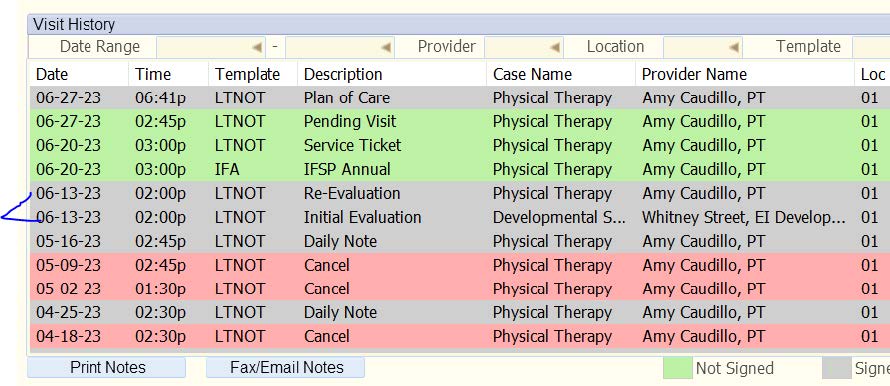 - This will bring you to the Visit Info tab of the patient’s chart, which shows the visit history. Make a note of the date the eval is scheduled for by both providers. Each provider does their own evaluation, then the primary provider combines both reports into the functional evaluation.