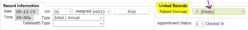 6. Linked Records – Patient Formset: If the Signature Packet was already created and sent to the parent, click on the [Empty] bar and add the set to this IFSP. If it hasn’t been sent, use the [Empty] bar to add an IFSP Packet, then F10 to save it so that it links to this IFPS:
